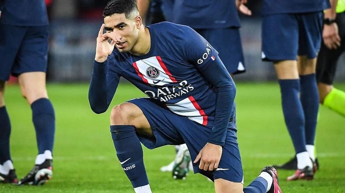 أشرف حكيمي يهدي هدفه ضد تولوز لصديقه الغائب مبابي